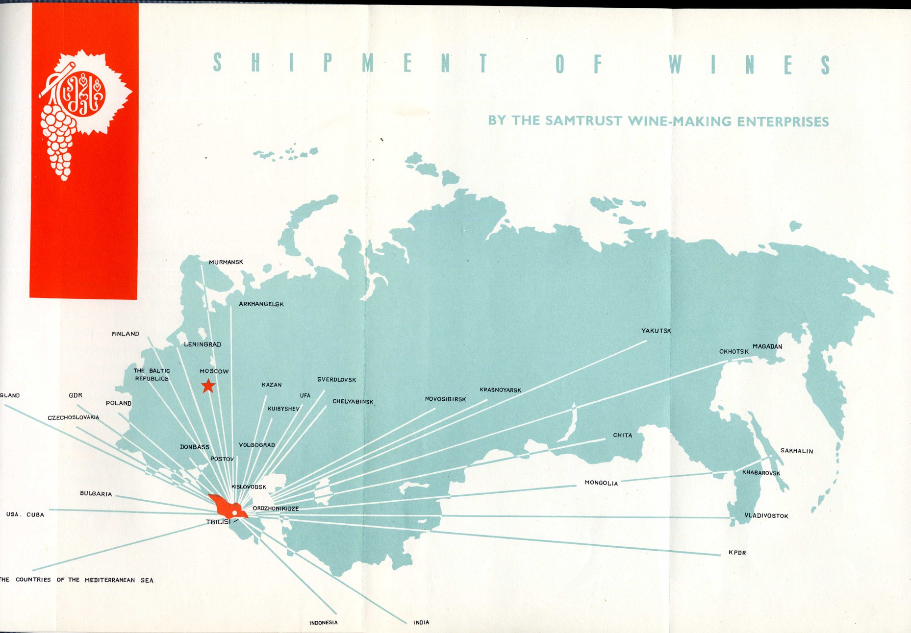 ესეც სამტრესტის რუქა! ასე მოძრაობდა იმ ეპოქაში ქართული ღვინო, სახალინიდან მურმანსკამდე, ფინეთიდან ინდოეთამდე, და რკინის ფარდის ორივე მხარეს-კუბაზეც და ამერიკაშიც, დიახ, ცივი ომი-ომად, რკინის ფარდა-ფარდად, ქართული ღვინო კი ღვინოდ რჩებოდა და ასე იყო რუზველტიდან რეიგანამდე